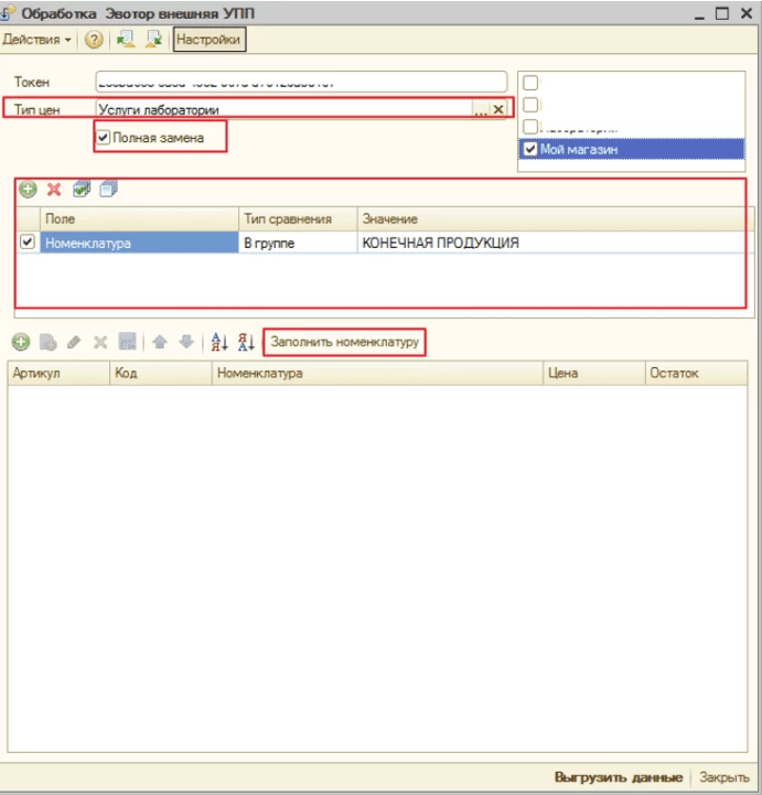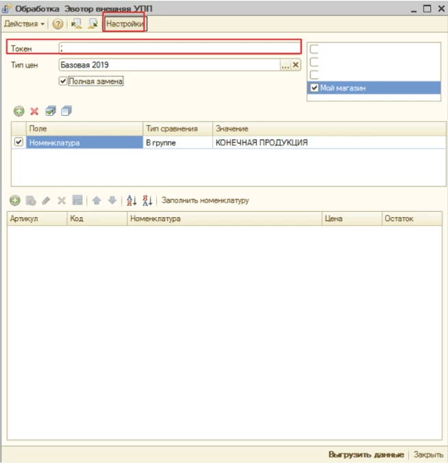 Загрузка номенклатуры в Эвотор из 1С